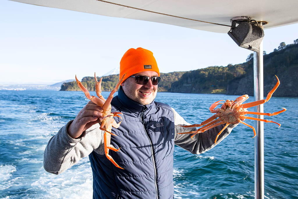У острова Ста́ричков капитан остановит судно для глубоководной рыбалки. В этом районе водится палтус, бычок, камбала. Почти за час даже новичкам удается выловить хотя бы одну рыбу, а чаще — несколько. В сезон, дайвер достает к обеду морских ежей — еще один камчатский деликатес. Их икру едят сразу, сырой. Можно приправить ее соусом, но мы советуем попробовать и без него — так по-настоящему раскрывается ее океанский вкус. К столу подадут на сравнение знаменитого камчатского краба и краба-стригуна. Основным блюдом будет уха.