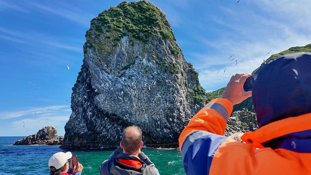 После обеда яхта подойдет поближе к острову Ста́ричков. Это небольшой клочок земли, на котором обитают только морские птицы, зато их здесь тысячи. Вы увидите топорков с оранжевыми клювами, бакланов, чаек, моевок, ста́риков, в честь которых остров и получил имя. Высадиться здесь нельзя: во-первых, берега слишком крутые, во-вторых, это заповедная зона. Но, прежде чем отправиться обратно в бухту, мы целиком обойдем остров на яхте, осмотрим птичьи базары, сделаем фотографии и попробуем понаблюдать за пугливыми тюленями — они часто отдыхают на прибрежных рифах. Возможно, нам даже повезет встретить в этих водах косаток и китов.