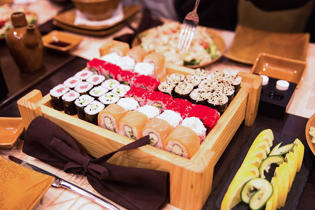 Морскую тему мы продолжим ужином в ресторане японской кухни «Киото». Здесь вам подадут угря, сашими из лосося и тунца, суши из окуня и палтуса, жульен из крабов и настоящие, тающие во рту роллы с гребешком и тунцом.