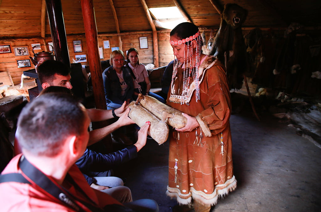 Знакомство с национальной культурой начнется с экскурсии в питомник ездовых собак и катания на упряжках. Нас встретят больше сотни дружелюбных хаски, маламутов, лаек, самоедов. Члены общины возрождают традиционное для северных народов ездовое собаководство и готовят питомцев к международным соревнованиям. На Камчатке каждый год проходит гонка «Берингия», основатели общины, семья Семашкиных, регулярно занимают в ней призовые места.