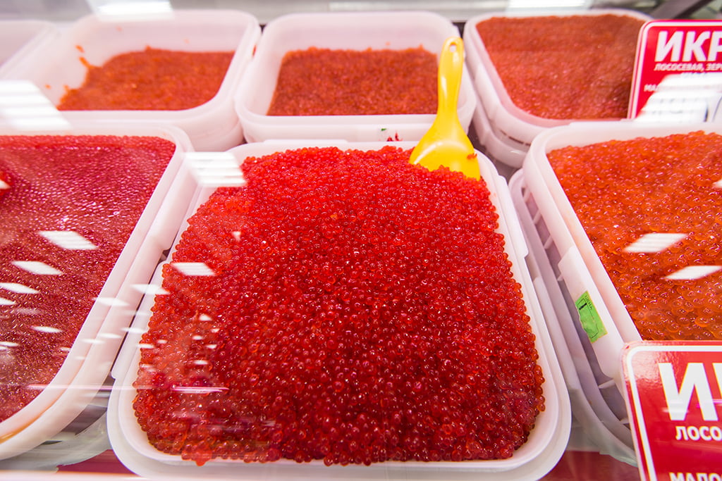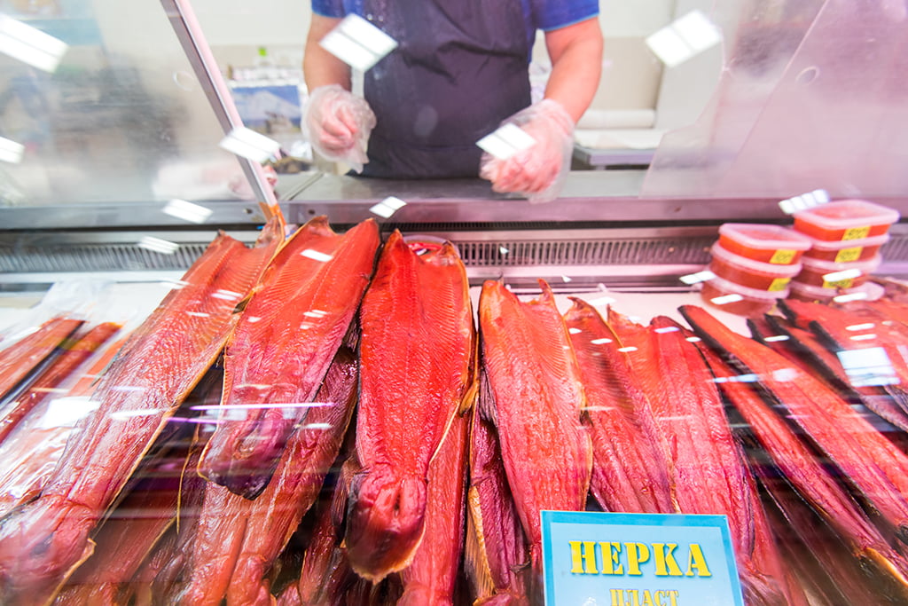 Перед вылетом с Камчатки мы заедем за гостинцами на крупный рыбный рынок. Хотя к концу этого тура участники обычно уже подкованы в морской кухне, в видах рыбы и морепродуктов на местных прилавках все равно можно запутаться. Если понадобится, мы поможем с выбором.