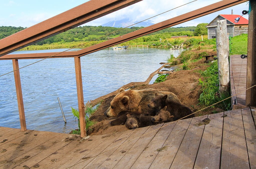 Сегодня запланирована экскурсия на рыбоучетное заграждение, где ученые ведут учет заходящей на Курильское озеро рыбой. Через реку сооружен мост, с которого группа будет очень близко наблюдать за рыбалкой медведей. Специалисты расскажут, как проводят научные исследования, каким образом фиксируют проходящую рыбу, ее жизненный цикл, как она преодолевает препятствия по пути от океана.
