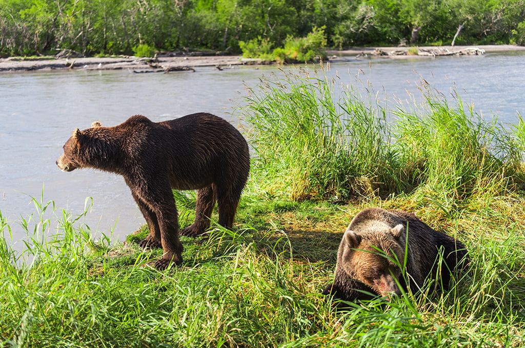 Утром отправимся на экскурсию на один из берегов Курильского озера. Участники оказываются в самом центре событий. Здесь, у устьев небольших речушек собирается множество медведей, иногда несколько десятков. Они приходят к озеру, ради нерестящейся нерки, и можно долго наблюдать, как эти огромные хищники ловко охотятся на рыбу, выясняют отношения друг с другом или просто спят на берегу. Благодаря специально оборудованным наблюдательным площадкам и сопровождению опытных инспекторов заповедника, гости могут чувствовать себя в безопасности и при этом находиться совсем рядом с дикими животными.