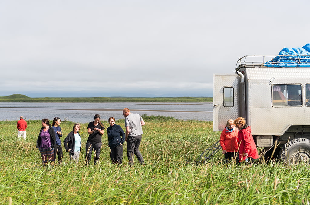 Выезжаем из Петропавловска очень рано в районе 5:30 – 6:00. Нам предстоит проехать через всю Камчатку сначала на западное побережье к Охотскому морю, а далее почти на самый юг полуострова до поселка Паужетка. По дороге мы заберем часть наших туристов из гостиницы Начики, которые проходят полный тур «Медведи, вулканы и косатки».