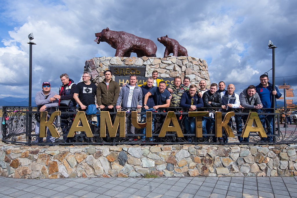 В первый день туристы прилетают в аэропорт Елизово. После паспортного контроля и получения багажа их встречает гид с табличкой «Kamchatkaland». Гид помогает с вещами, отвечает на первые вопросы об особенностях региона. Когда вся группа собирается, отправляемся на автобусе к памятнику «Здесь начинается Россия». По дороге гид делится фактами о Камчатке, её истории и природе. У памятника делаем остановку: можно сфотографироваться, полюбоваться панорамой на вулканы.