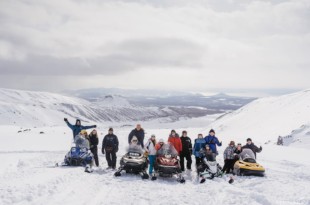 К подножию Авачинского вулкана группа отправится на специальных нартах, буксируемых мощными снегоходами. Маршрут проходит по живописным местам, где вы сможете запечатлеть зимние пейзажи Камчатки и сделать потрясающие фотографии.