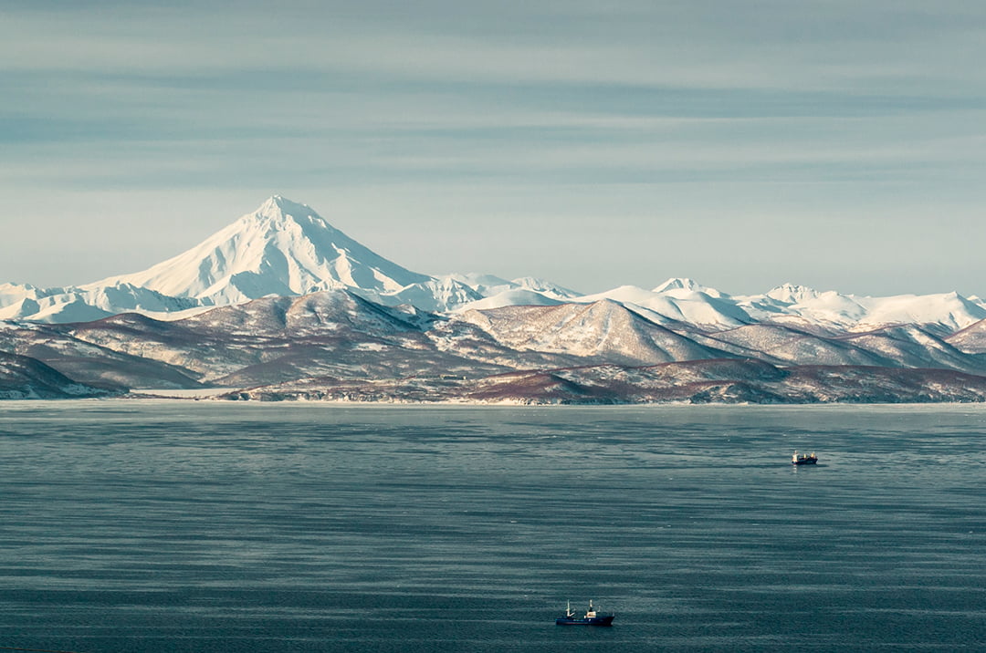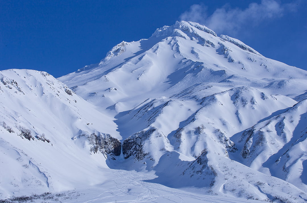 Зимний Вилючинский вулкан представляет собой поистине феерическое зрелище. Его монументальный конус, укрытый толщей искрящегося снега, величественно возвышается над окрестностями, а склоны переливаются на солнце, создавая впечатляющий контраст с лазурным небом. Здесь царит особая атмосфера безмятежности, а кристально чистый горный воздух наполняет каждую клеточку тела живительной энергией.