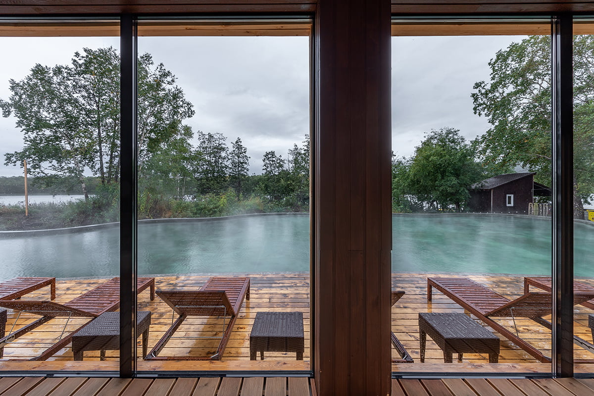 Сразу после заселения вы сможете отдохнуть в естественных горячих купальнях. Минеральная вода в них сохраняет комфортную температуру даже в мороз. Рядом с домиками есть три природных бассейна, благоустроенных деревянными дорожками, лестницами и раздевалками.