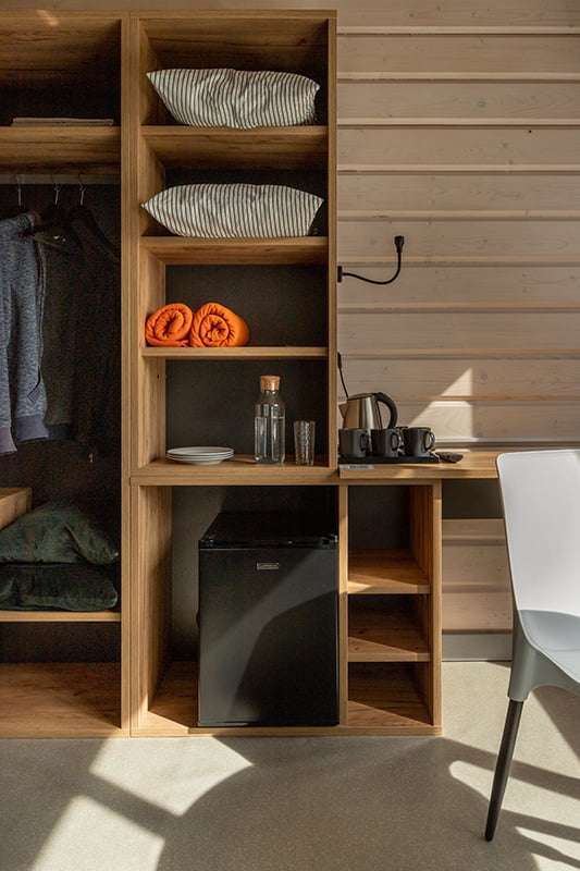 Размещение двухместное в модульном домике Стандарт, площадью 21 м. В каждом есть душ, туалетная комната и обеденная зона. На территории базы есть открытый бассейн с горячей водой, хороший ресторан, детская зона, спа-зона.