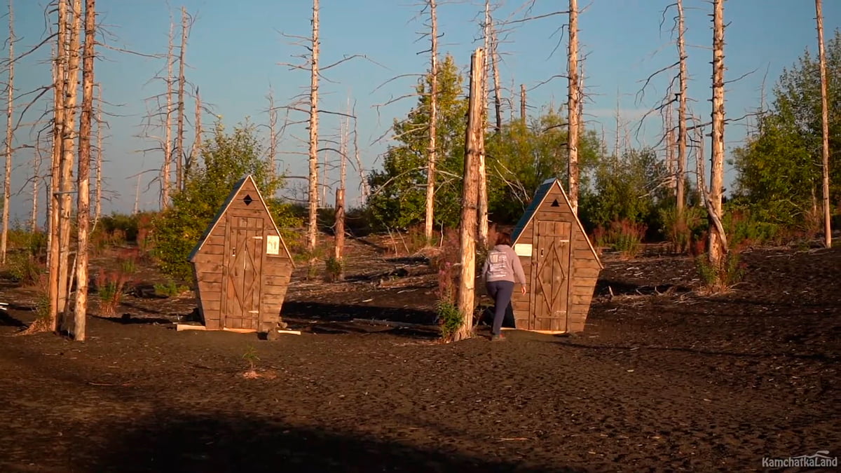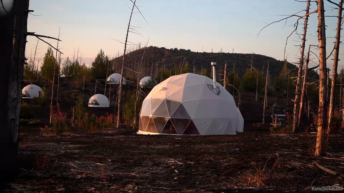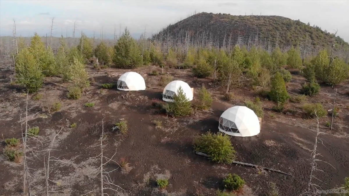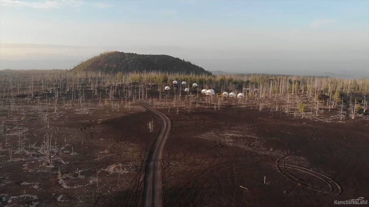 Вечером мы прибудем к Мертвому лесу у подножия вулкана Толбачик и заселимся в шатры глэмпинга — такие же, как на Вилючинском перевале. Ужинаем, отдыхаем и ложимся спать.