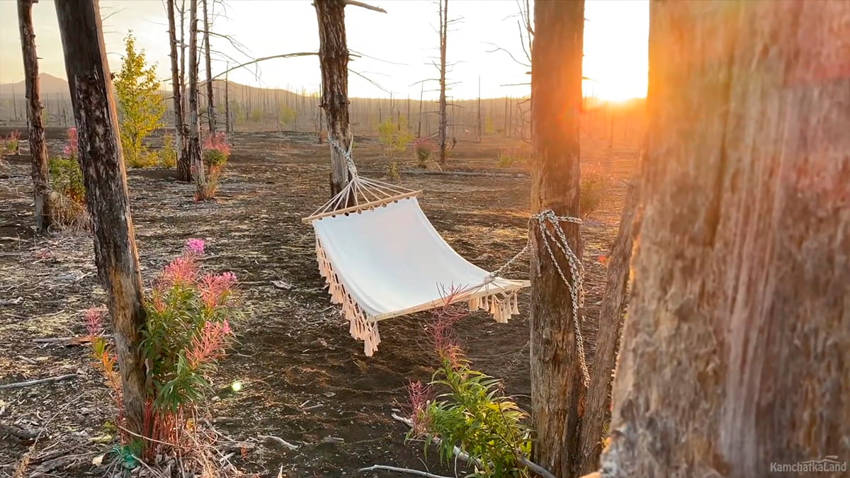 Прямо посреди Мертвого леса, выжженного извержениями, находится островок цивилизации: комфортные и теплые шатры, рядом столовая, душ, туалет. Здесь можно зарядить телефон, заварить свежемолотый кофе, полежать в гамаке с видом на вулканические пейзажи, а вечер провести у костра, любуясь на звезды.