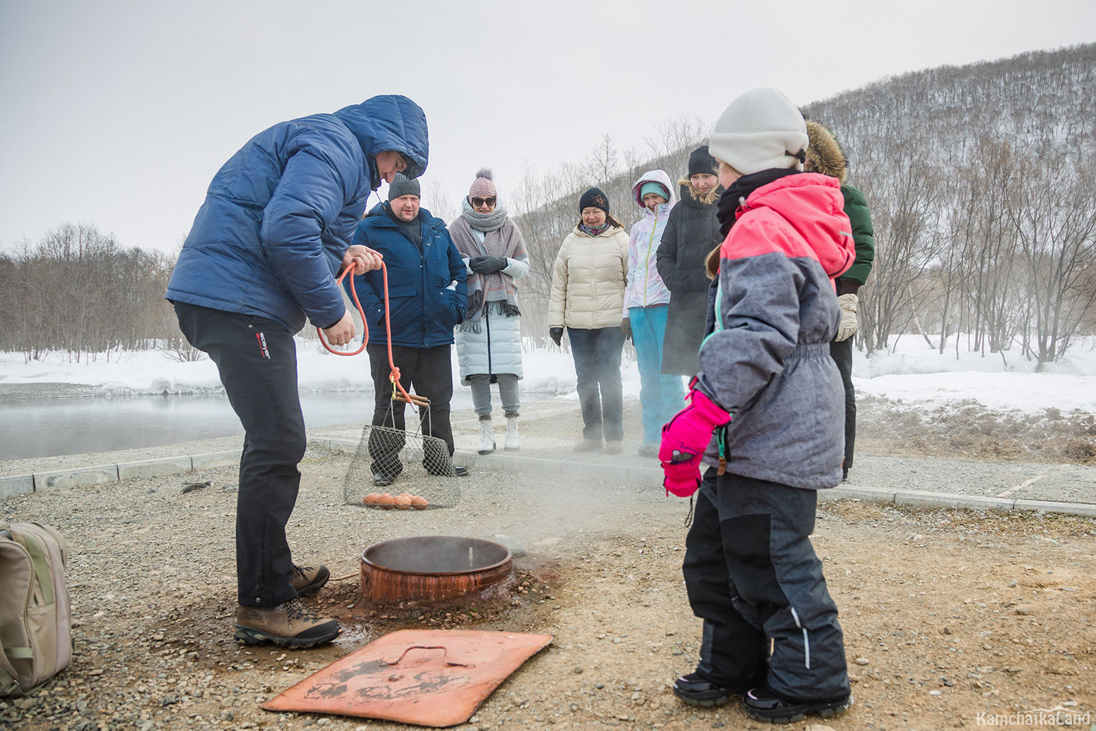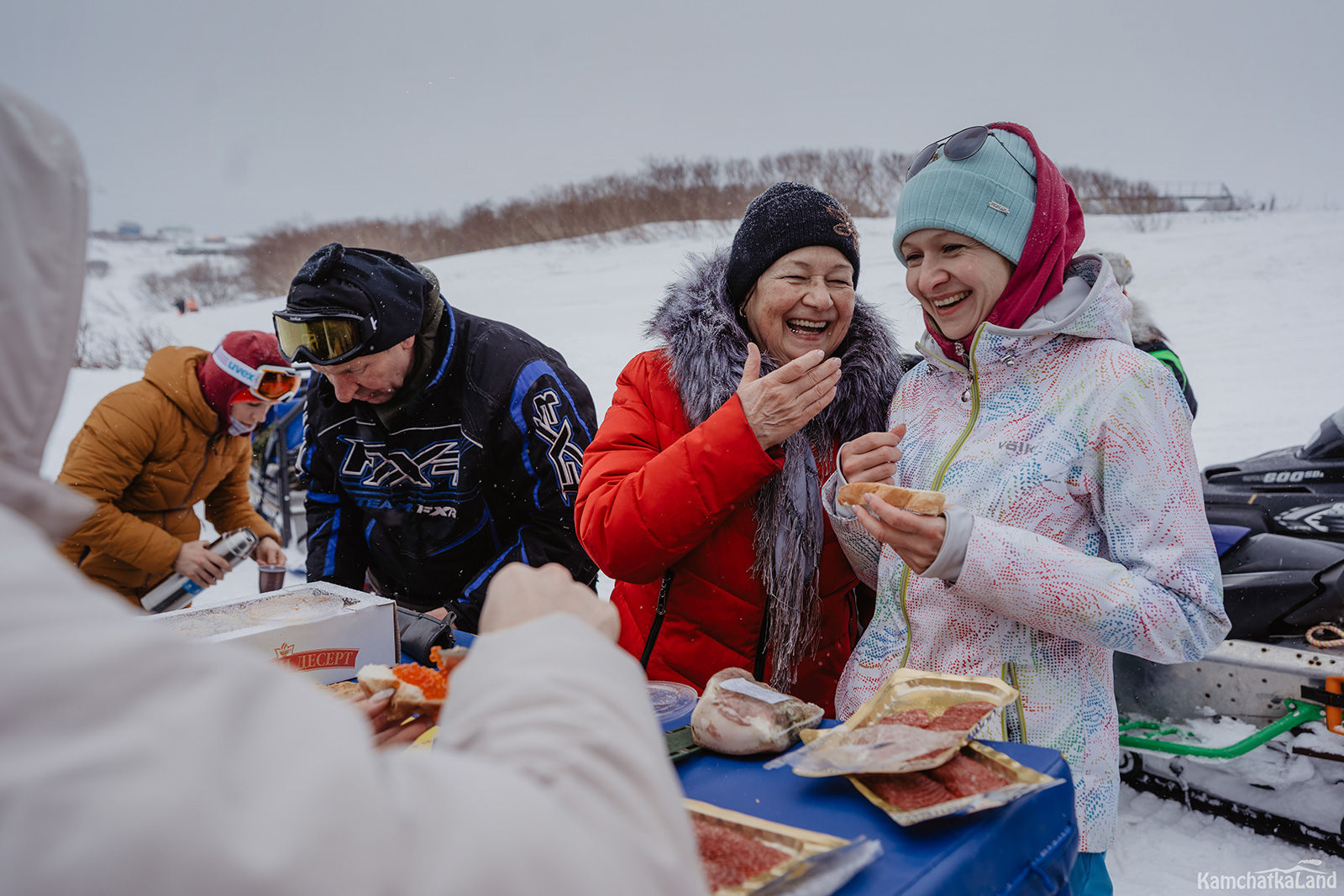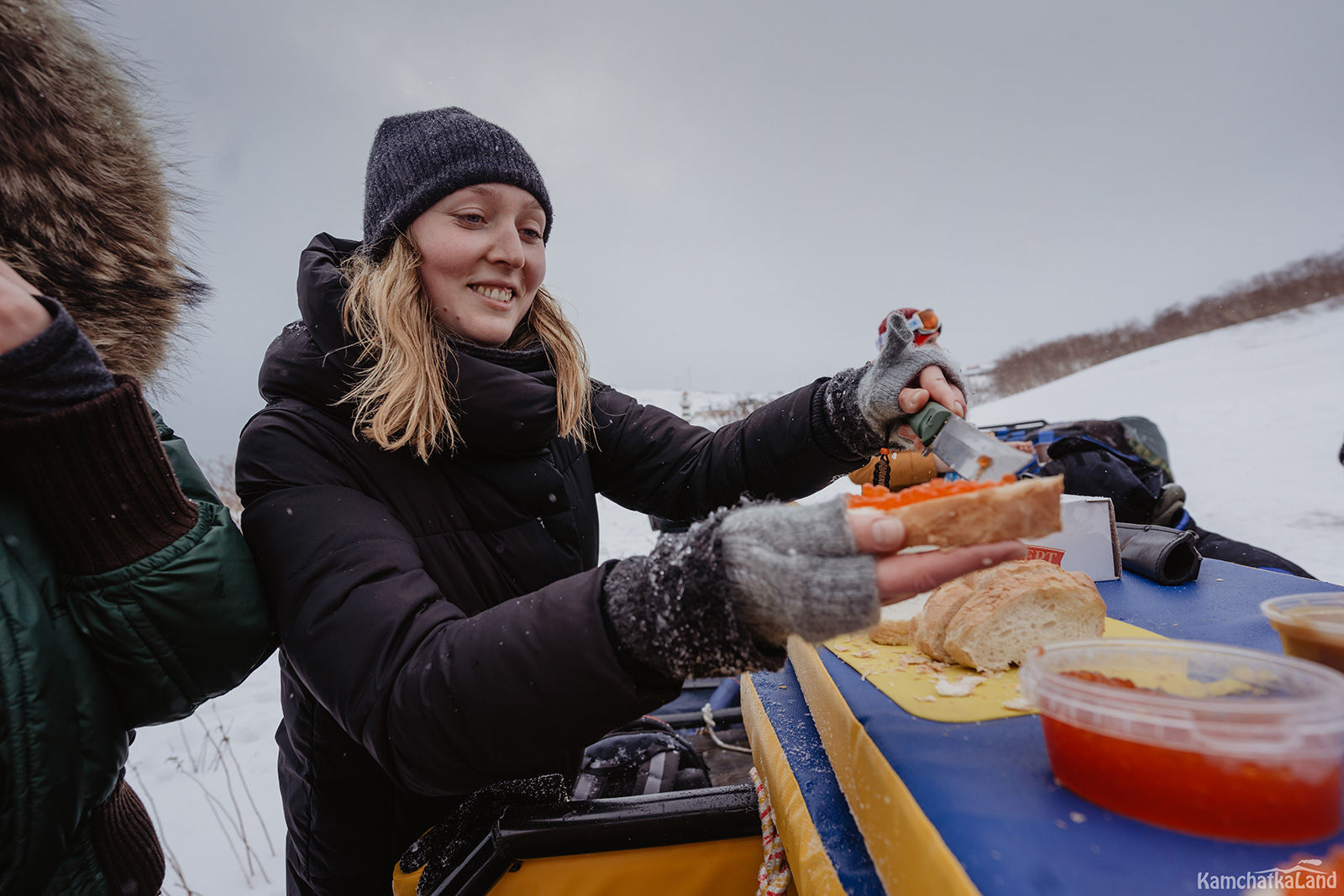 Каждый день здесь как экспедиция — вы то рыбачите, то гоняете на снегоходах. Можно попасть в музей вулканов, погреться в горячем источнике, отправиться в этнопоселение или встретить восход у океана. Для ценителей спокойного отдыха тоже найдется немало приятных занятий: неспешные прогулки по заснеженным бухтам с видом на дрейфующие льдины, купание в природных термальных бассейнах с целебной водой, наблюдение за морскими львами, которые нежатся на прибрежных камнях.